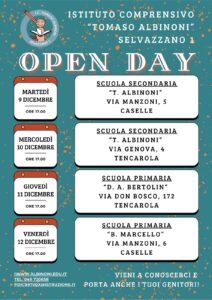 Gli Open Day delle scuole primarie e secondarie dell’istituto si svolgeranno secondo il seguente calendario: